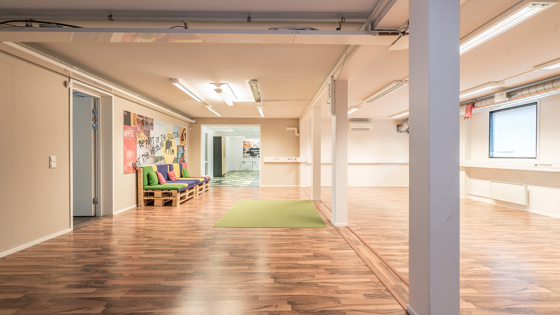 Tiloissa nykyaikainen koneellinen ilmanvaihto ja useita ilmalämpöpumppuja, joilla saadaan miellyttävä sisälämpötila niin kesällä kun talvella. Hyvin varusteltu keittiö/taukotila.